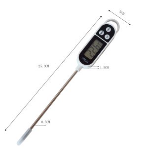 Precise temperature control, safe and worry-free! With a high-quality core, it measures temperature in just 0.5 seconds with ±0.5℃ high accuracy. The ABS eco-friendly shell is durable, corrosion-resistant, and easy to clean with water thanks to its waterproof feature. The LCD large screen with backlight design ensures clear visibility even when cooking late at night. The 304 stainless steel probe is high-temperature resistant, and the elongated probe protects hands from burns, with a hook at the end for easy hanging and retrieval. Say goodbye to undercooked food forever with this kitchen essential!
